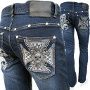CLOUD72 (クラウド72) #736 メンズ オールシーズン ストレートデニム/ジーンズ スカル 刺繍 USED加工 ストレッチ 色落とし インディゴ ブルー 28インチ-36インチ 購入