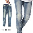 mnml ミニマル M12 STRETCH DENIM BLUE クラッシュ ダメージジーンズ デニムパンツ ストレッチ デニム スキニー スキニージーンズ ジーンズ メンズ ジップ付 サイドジッパー サイド ジッパー 裾ジップ ZIP インポート ブランド ストリート ファッション ★Re