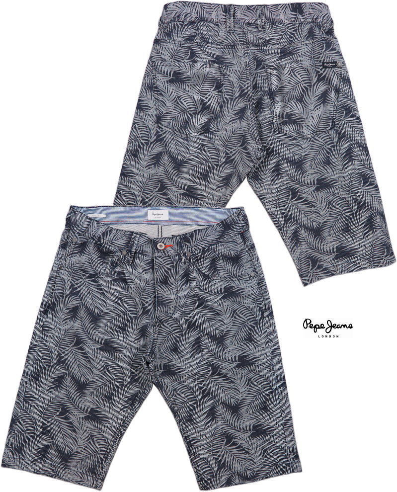 - Pepe Jeans/ペペジーンズ CASH BERMUDA SHORTS LEAF リーフプリント入り、ヒッコリーストライプショーツ/カットオフパンツ/5ポケットハーフパンツ NAVY(ネイビー)