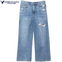 アメリカンイーグル ジーンズ レディース ジーンズ 上質 デニムパンツ ハイウエスト ウォッシュデニム ハードダメージ ワイドレッグ クロップ丈 ボトムス アメカジ【USA 8 R 】ミディアムウォッシュブルー 送料無料 あす楽 American Eagle アメリカンイーグル 正規品 購入