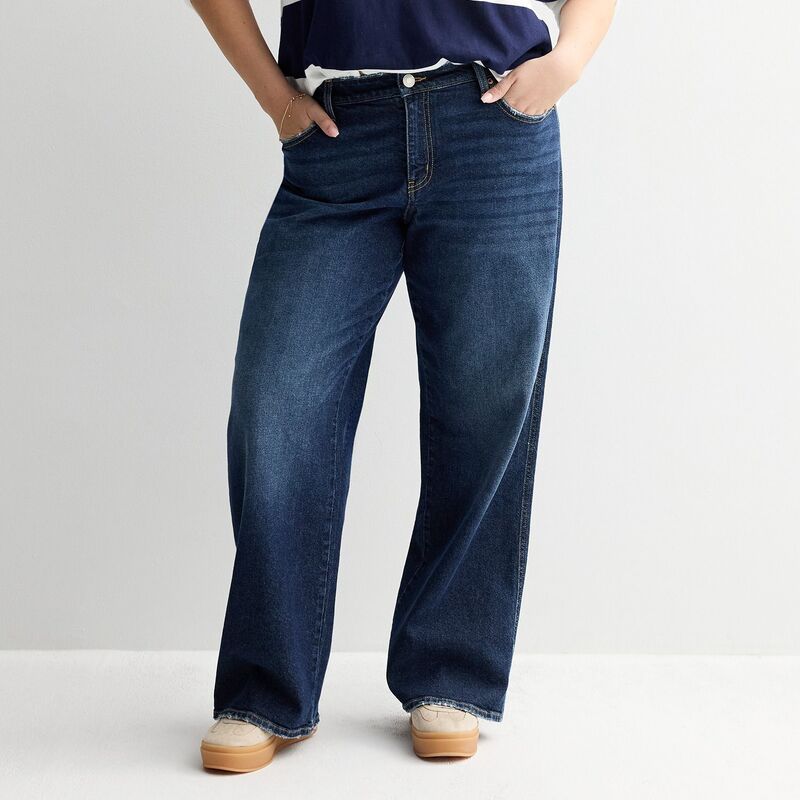 - エスオー レディース ボトムス デニムパンツ ワイドレッグ プラスサイズ ローライズ ジーンズ Juniors' Plusize SO Low-Rise Wide Leg Baggy Jeans Dark Blue ブルー