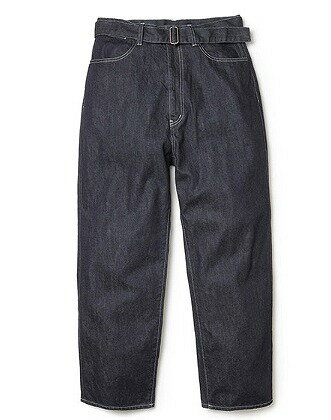 RINSE WASH 12oz CRUNCH DEINIM / WIDE TAPERED BELTED JEANS セルビッチと近い表情、風合いに近づける特殊なクランチ織りをした12オンスのデニム。 濃紺のインディゴで染めたムラ感のある7番手の縦糸を使用し、 洗いこむほどにビンテージのような色合いに経年変化を楽しめる素材です。 股上は深く、ヒップ周りもゆったりで裾に向かってナチュラルなテーパードシルエットのパンツ。 ウエストには脱着可能なデニムベルトを搭載。リンスウォッシュで柔らかく履きやすく仕上げたパンツ。 素材:Cotton 100% 原産国:日本 ※※注文時のご注意※※ ■こちらの商品はお取り寄せ商品です。在庫は常に流動しており、お客様のご期待に添えない場合がございます。 ■ご注文後、お取り寄せが可能な場合、発送までにお時間をいただく場合がございます。各カラー、サイズの発送予定目安をご確認くださいませ。 ■お客様ご都合でのキャンセル・返品・交換はお受けしておりません。 ■商品写真はできる限り現品を再現するように心がけていますが、ご利用のモニターにより差異が生じます。 以上、予めご了承の上ご注文くださるようお願いいたします。