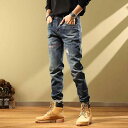 デニムパンツ メンズ アメリカン 春秋 スリムフィット ジーンズ ボトムス ズボン クラッシュ加工 刺繍 カジュアル レトロ ジップアップ 伸縮性 耐摩耗性 ロング おしゃれ 青