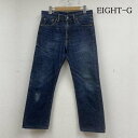 ■エイトジー 102 デニム ジーパン ジーンズ タイトストレート ジップフライ ボタン ロゴ 刻印入り メンズ 32インチ ISItems【USED】【古着】【中古】50147739