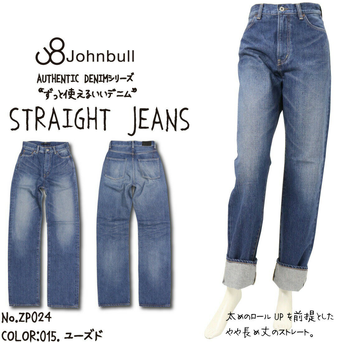 ■JOHNBULL ジョンブル ZP024 ジーンズ ストレート デニム 太 ロールアップ オーセンティック 15 ユーズド レディース ボトムス 日本製 SS/S/M ハイウエスト