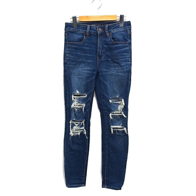 ■【中古】アメリカンイーグル AMERICAN EAGLE クラッシュ デニム ジーンズ ストレッチ スリム パンツ 6 ネイビー 紺 /FT20 レディース 【ベクトル 古着】 250414