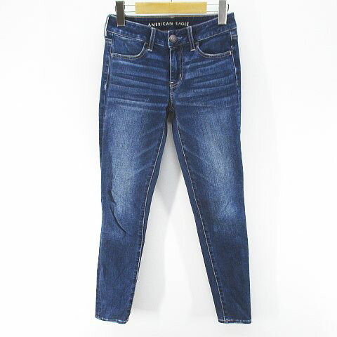 ■【中古】アメリカンイーグル AMERICAN EAGLE ダメージスキニージーンズ デニム ロング 紺 00 *A699 レディース 【ベクトル 古着】 250801