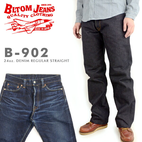 ■岡山 ジーンズ メンズ 日本製 ストレート BLTOM JEANS ブルトムジーンズ B-902 24oz 24オンス かなり厚手 DENIM レギュラー 朧藍 アメカジ 国産 デニム ブランド パンツ 裾上げ 40代 デニムパンツ ジーンズステッチ糸 金茶 岡山デニム