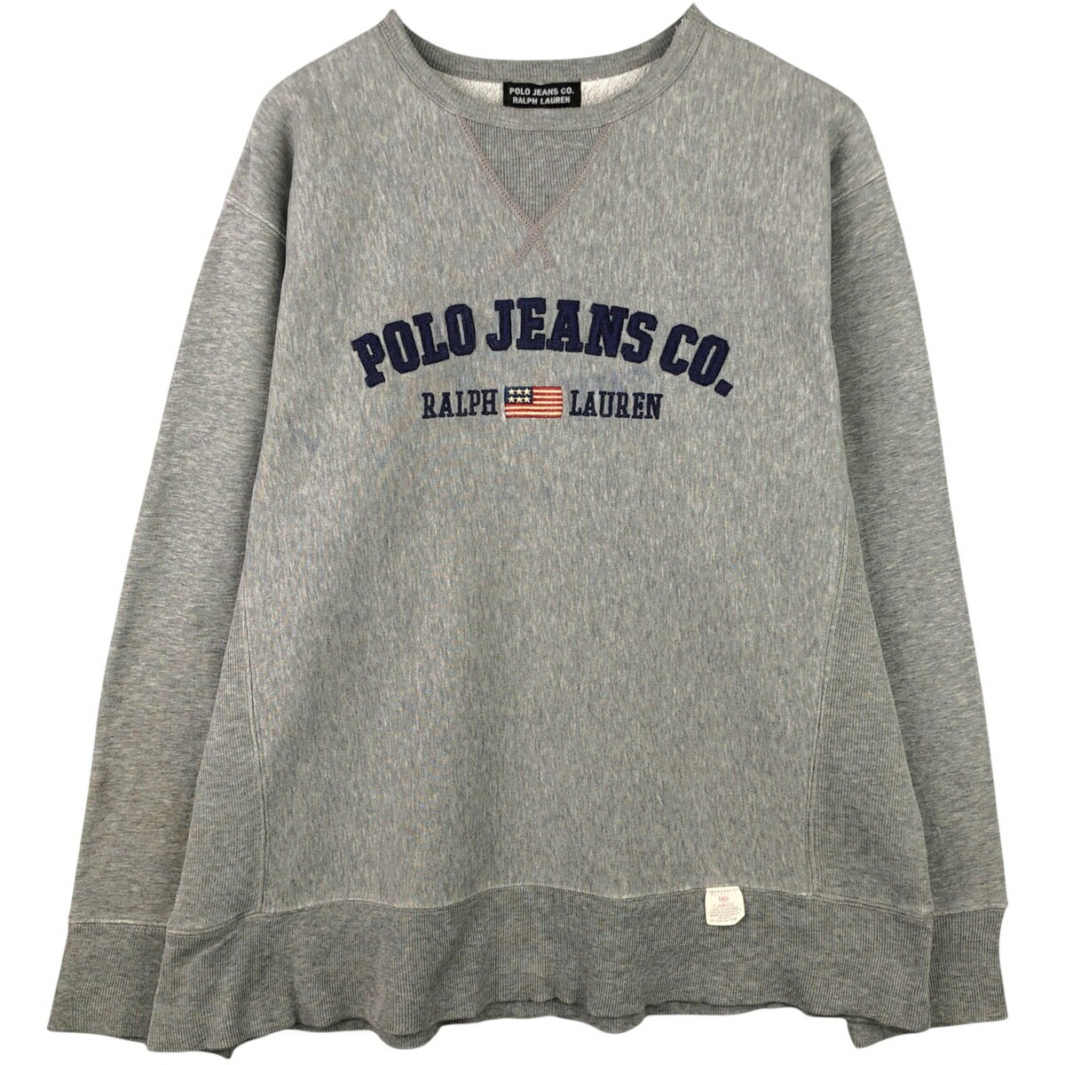 商品詳細 ブランド・Ralph Lauren・ラルフローレン・ 特徴・クルーネック(丸首)・長袖・前Vガゼット・ モデル/形状・POLO JEANS COMPANY・ロゴスウェットシャツ トレーナー・ 素材・コットン:80%・ポリエステル:20%・ 色・グレー系 灰色・ 柄・パッチ・刺繍・ 生産国・インドネシア製・ 年代・00年代・ サイズ・メンズL・表記サイズ:L・着丈:70cm・身幅:60cm...