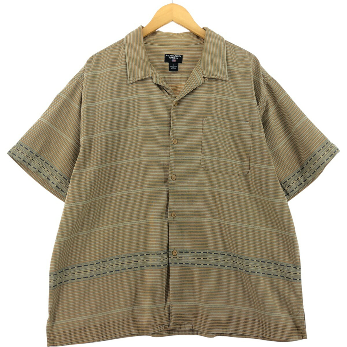 商品詳細 ブランド・Ralph Lauren・ラルフローレン・ 特徴・オープンカラー・半袖・ボックスシャツ・ モデル/形状・RALPH LAUREN JEANS CO・半袖 オープンカラー コットンシャツ・ 素材・コットン:100%・ 色・オーカー系 黄土色・ 柄 生産国・インド製・ 年代・00年代・ サイズ・表記サイズ:L・着丈:75.5cm・身幅:62.5cm・肩幅:54.5cm・袖丈:24....