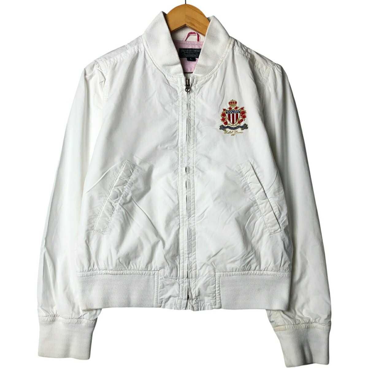 商品詳細 ブランド・Ralph Lauren・ラルフローレン・ 特徴・フルジップ・長袖・ モデル/形状・POLO JEANS COMPANY・コットンブルゾン・ 素材・コットン:100%・ 色・ホワイト系 白色・ 柄・無地・ワンポイント・ 生産国・バングラデシュ製・ 年代・00年代・ サイズ・表記サイズ:L・着丈:55.5cm・身幅:52.5cm・肩幅:39.5cm・袖丈:63.5cm・ コンディ...