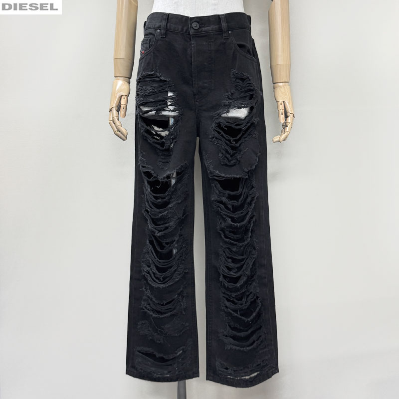 ■DIESEL ディーゼル 新品 レディース シュレッドダメージデニムパンツ ARYEL 00SHG7 084WH 02 レギュラーストレート レギュラーウエスト W28、W30 ブラック ノンストレッチ ジーンズ 送料無料