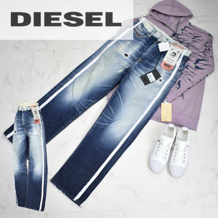 ■毎日20時〜30%OFF◎ディーゼル ジャパン ボトム ジーンズ サイドライン イタリア製 ウォッシュデニム ストレート ストレッチ レディース 【大】DIESEL REGGY096S ジーパン イタリア ダメージ W26 L32 ユニセックス 半額 \定価から50%OFF/