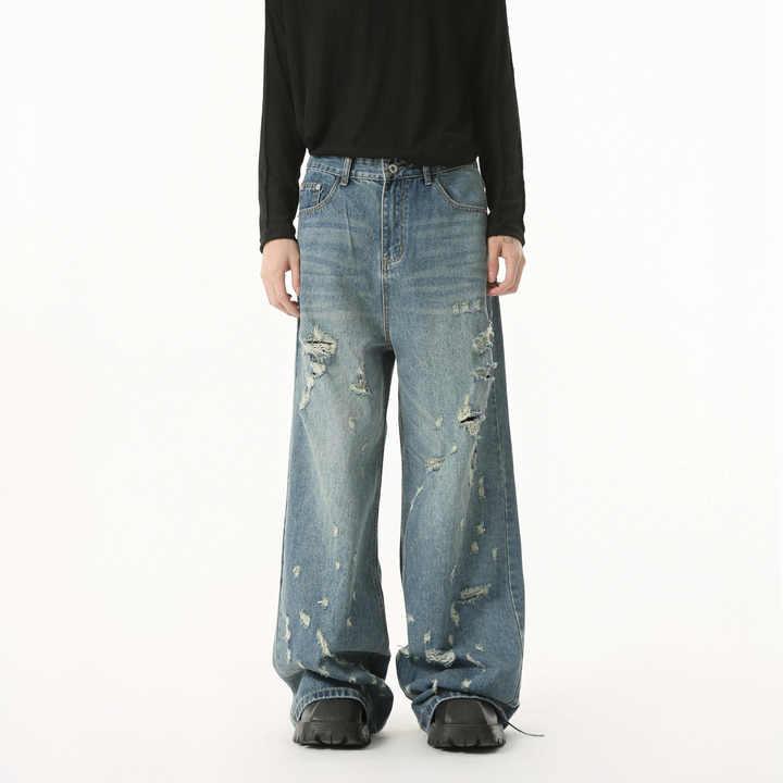 ■ジーンズ メンズ カスタム ハイウエスト ルーズ アシッドウォッシュ ヴィンテージ ワイドレッグ ディストレスト おしゃれ 人気 バギージーンズ ストリートスタイル 通気性 軽量 カジュアル ファッション