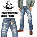 ■ETERNAL エターナル メンズ ジーンズ ローライズ リメイク デニムパンツ ライトインディゴ レギュラーストレート ダメージ クラッシュ加工 日本製 52292-2