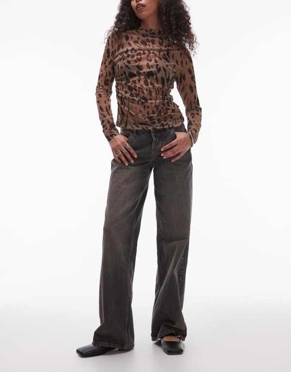 ■トップショップ レディース ボトムス デニムパンツ ワイドレッグ ヴィンテージ ローライズ ジーンズ Topshop Ember low rise wide leg jeans in vintage Gray グレー