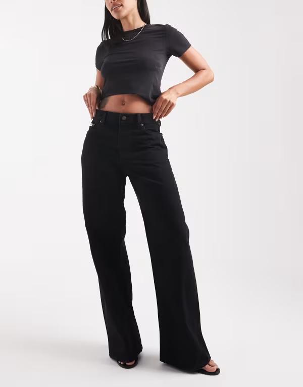 ■モーテル レディース ボトムス デニムパンツ ヴィンテージ ローライズ ジーンズ Motel parallel leg low rise jeans in vintage Vintage Black ブラック
