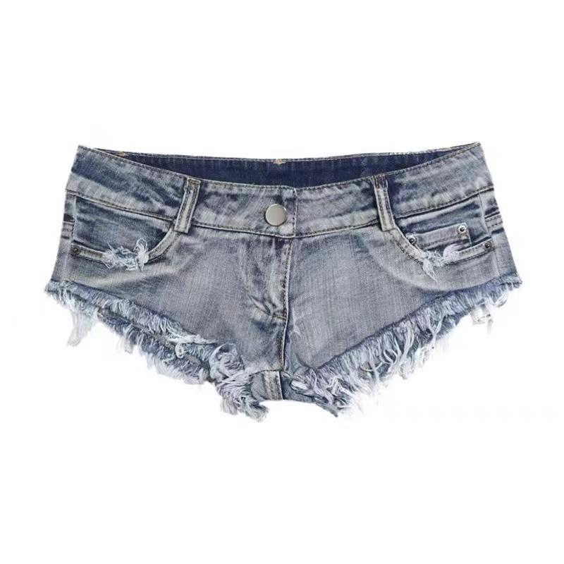 ■マイクロミニ ショートパンツ おしゃれ セクシー レディース ローライズ ミニ デニム ジーンズ フリンジ ヴィンテージ風 細見え タイト ナイトクラブ