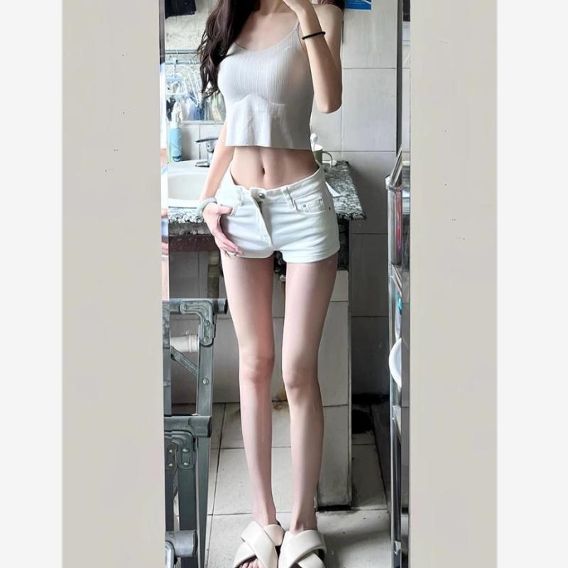 ■マイクロミニ ショートパンツ おしゃれ セクシー レディース 白 デニム ジーンズ 短パン ローライズ ストレッチ 風 コーデ ダンス