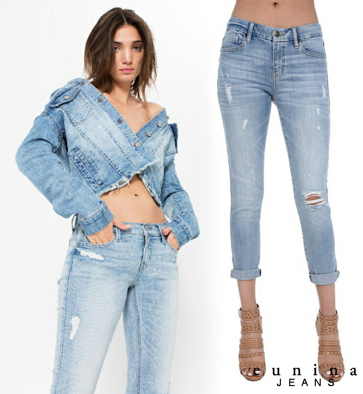 ■【ファイナルSALE】[EUNINA JEANS/ユーニーナ ジーンズ]GRETA MID RISE SKINNY ROLLER / ローライズ スキニー デニム クロップド クラッシュ ダメージ