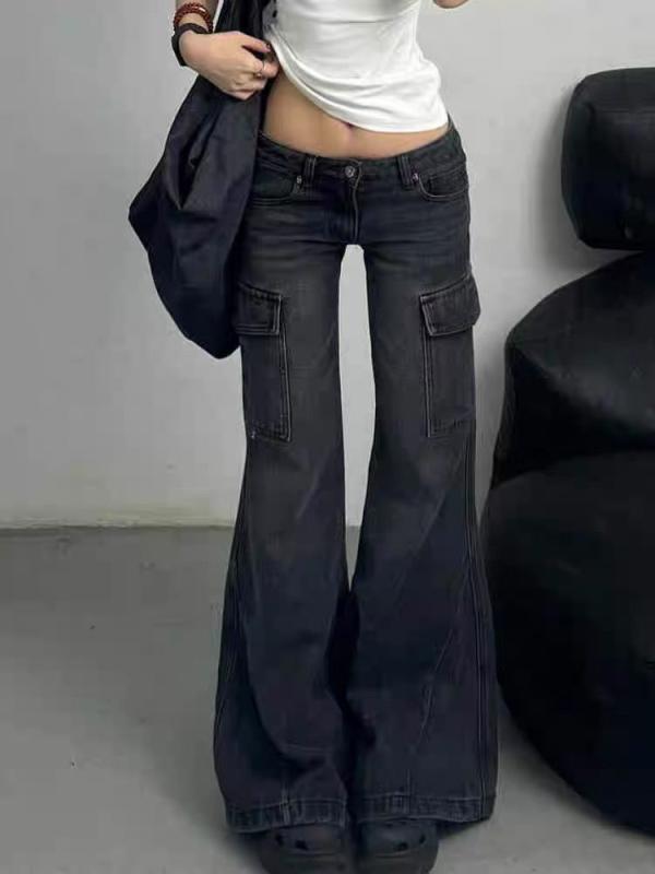 ジーンズ レディース 秋冬 ローライズ フレア デニム パンツ ポケット付き スリム 美脚 カジュアル・素材: デニム・主な素材: スパンデックス・-素材: ポリエステル・スタイル: ワークパンツ・パンツ丈: ロング・ウエスト: ローライズ・・特徴: ポケット・カラー: ブラックグレー・サイズ: S, M, L, XL, 2XL・スタイル: ストリート・伸縮性: ややあり・パンツスタイル: ワイド...