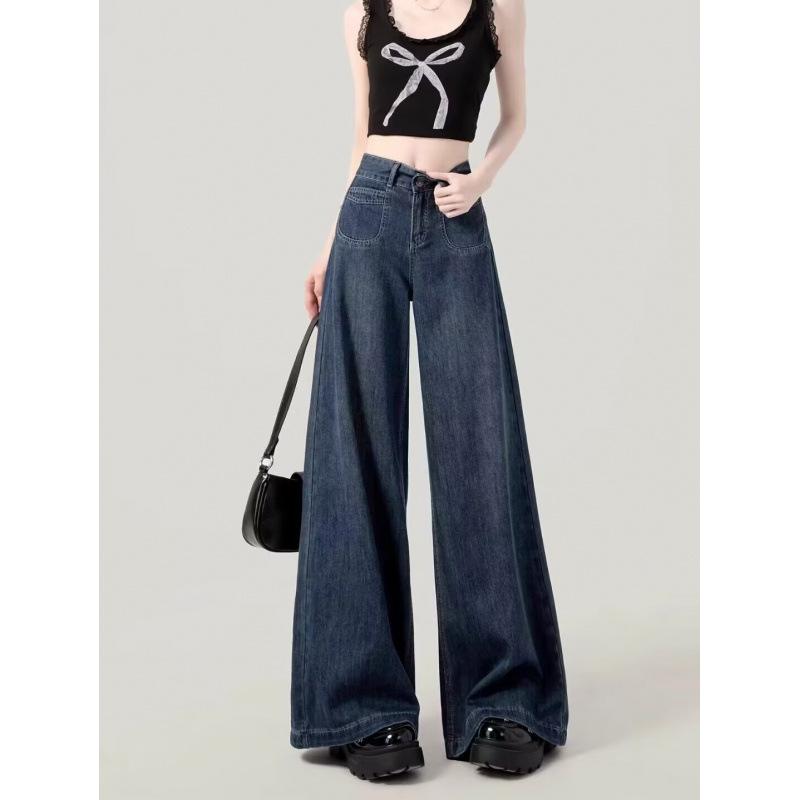 ■デニムパンツ レディース ローライズ ストレート ゆったり ブルー ジーンズ ジーパン ズボン ボトムス 普段使い 韓国風 カジュアル