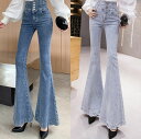 ■フレアパンツ レディース デニム 好評 ジーパン デニムパンツ ジーンズ ベルボトム ストレッチ 伸縮性 ブーツカット ボタン ファスナー 薄手 ポケット カジュアル ナチュラル きれいめ シンプル リラクシー お出掛け おでかけ お出かけ