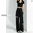 ■ダメージジーンズ レディース 大きいサイズ デニム ストレートパンツ ハイウエスト ワイドレッグ 薄手 春夏 ストリート クラッシュ加工 着痩せ おしゃれ 黒 青