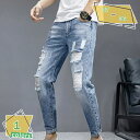 ■ジーンズ メンズ デニムパンツ ダメージ加工 ストレッチ スキニーパンツ ビンテージ加工 細身 ジーパン 個性 nbsp;春 夏 秋 冬 クラッシュ加工
