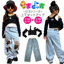 ■上下2点セット ダメージジーンズと肩出しトップス ロゴ ワンポイント 女の子 子供服 キッズ ハイウェスト ダメージ加工 無地 ライトブルー ブラック 110cm 120cm 130cm 140cm 150cm 160cm 170cm オープンショルダートップス ダンスウェア ダンス衣装 ヒップホップ