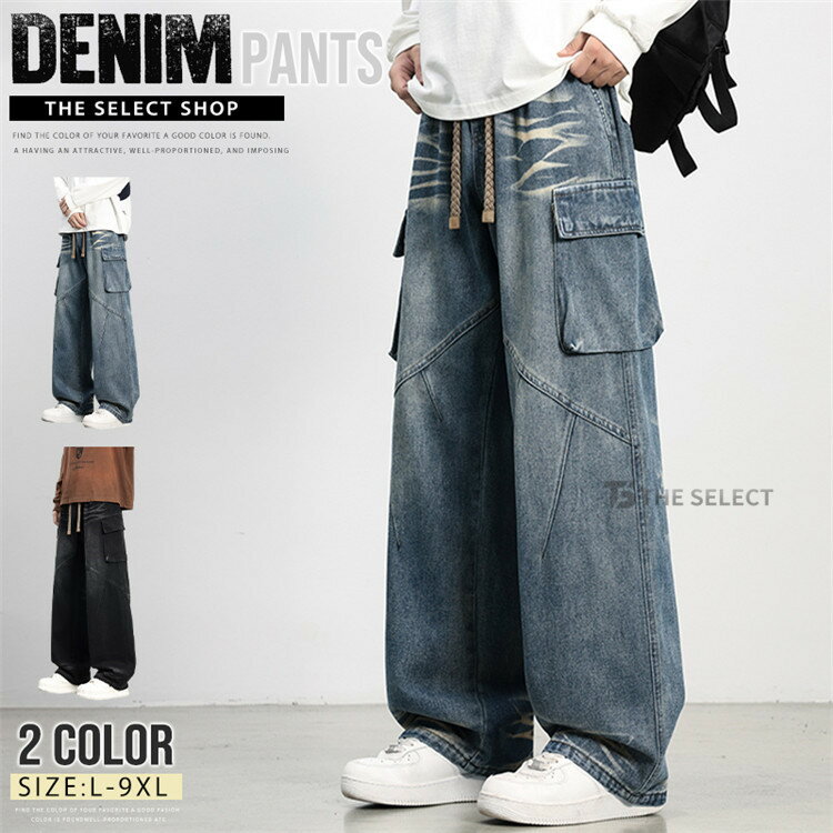 ■デニムパンツ メンズ 大きいサイズ パンツ 大きいデニム 太め ジーンズ Gパン カーゴパンツ ヒップホップ