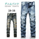 ■ジーンズ デニムパンツ メンズ スキニーパンツ ストレッチ スリム ダメージ加工 ミリタリーパンツ 欧米風 パンツ ボトムス ズボン ジーパン