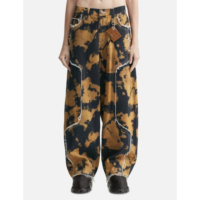 ■Dhruv Kapoor 【 Bleached Effect Raw Edge Balloon Jeans Unisex Brown 】 ジーンズ ユニセックス 茶色 ブラウン