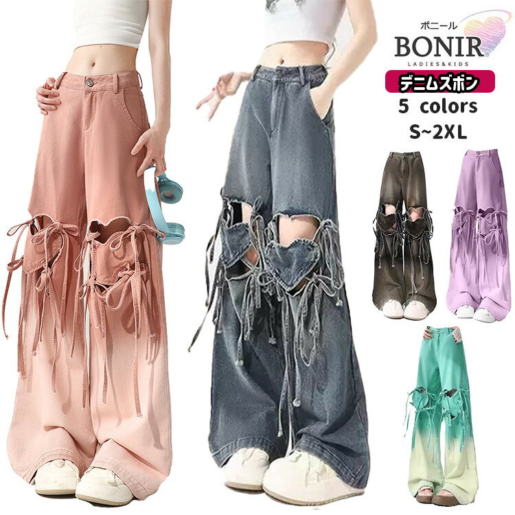 ■5色展開 ジーンズ デニムパンツ グラデーション カーゴ ダメージ ハート レディース 女性 大人 ダンス衣装 ヒップホップ アイドル k-pop jazz ブルー グリーン パープル ブラック ピンク チアガール ステージ 練習着普段着 ダンスウェア 応援団 発表会 S~2XL