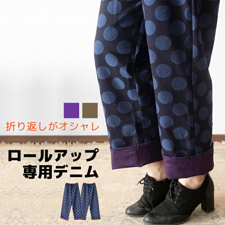 ■ロールアップ専用デニムパンツ 9oz ドット ジャガード パンツ ボトムス ロング ジーンズ 長ズボン デニム レディース デニムパンツ オシャレ 水玉 個性的 楽ちん カーキ パープル 紫