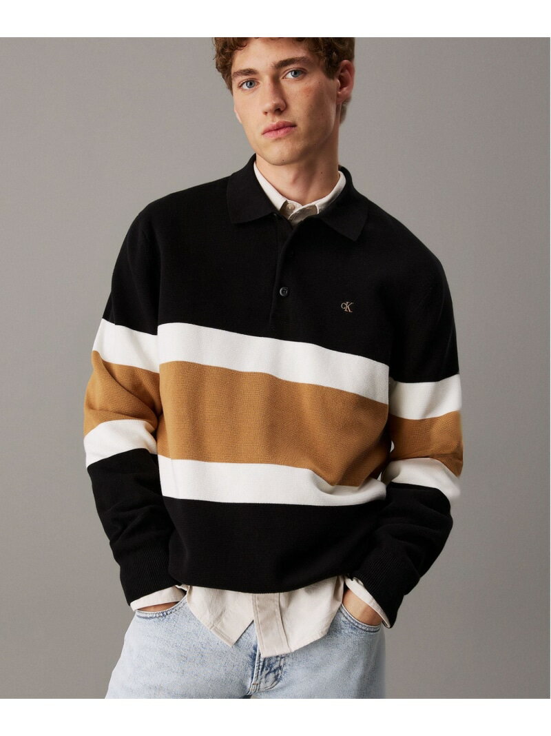 ■【SALE/30%OFF】(M)【公式ショップ】 カルバンクライン ハーフプラケットストライプポロセーター Calvin Klein Jeans 4RB301G Calvin Klein Jeans カルバン・クライン トップス ニット ブラック【RBA_E】【送料無料】[Rakuten Fashion]