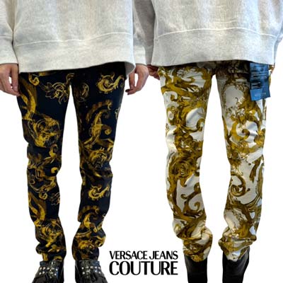 同時に店頭販売をしている為、在庫表示が反映されるタイムラグにより、商品のご注文が出来ても品切れの場合がございます。 又、お急ぎの時にはお問い合わせメールにて在庫確認の対応を致します。ギフト対応ヴェルサーチジーンズクチュール VERSACE JEANS COUTUREパンツ ジーンズ メンズ デニム ボトムス 2色展開 バロック柄 全体バロッコ柄・バックレザーエンブレムロゴパッチ・バックポケット部分...