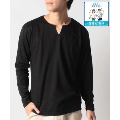 ■ジーンズメイト JEANS MATE 【ZERO STAIN】キーネック ロンT 汗染みの目立たない Tシャツ 撥水 防汚 UVカット 紫外線対策 (ブラック)