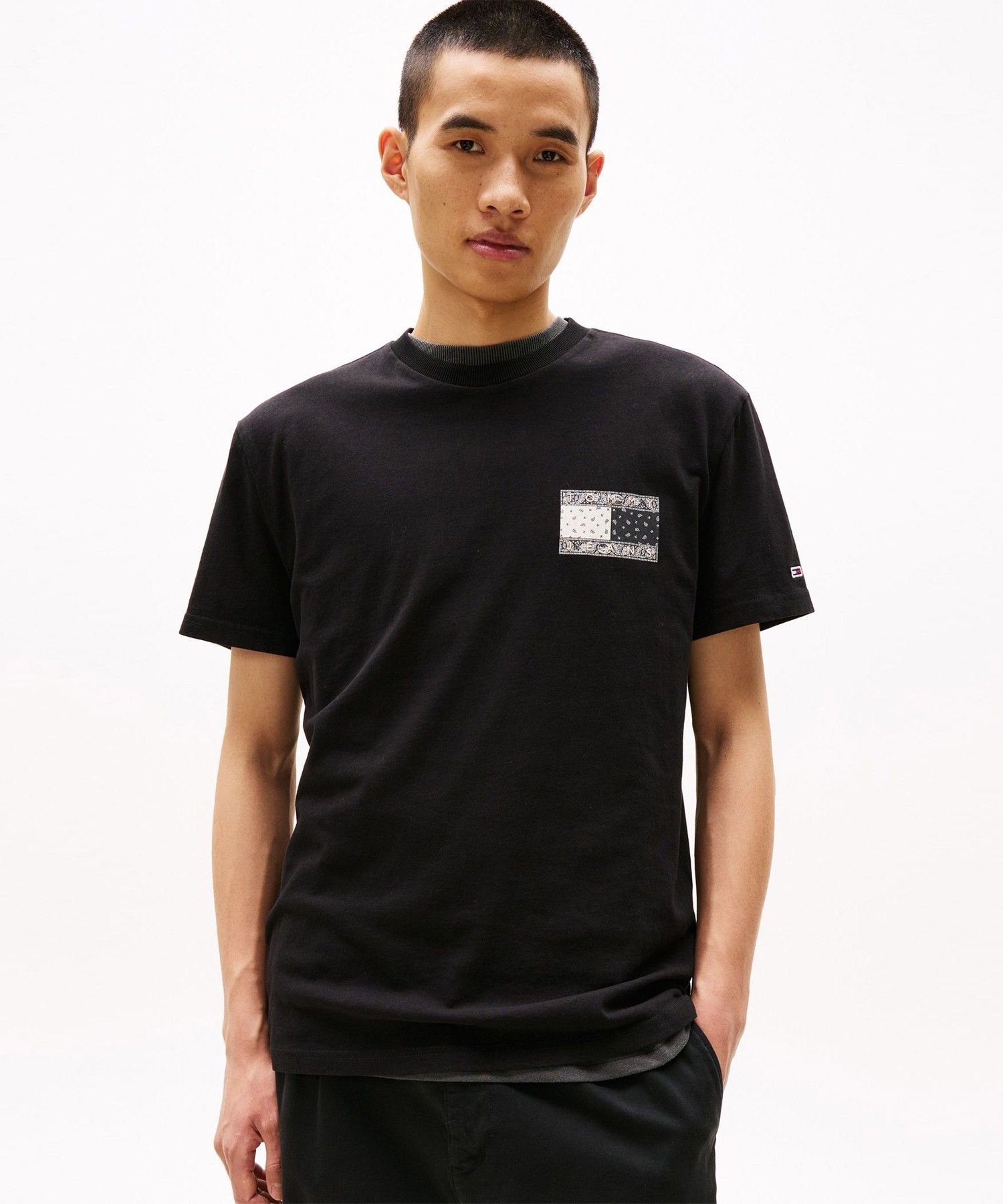 ■【SALE/50%OFF】TOMMY JEANS レギュラーペイズリーフラッグTシャツ トミーヒルフィガー トップス カットソー・Tシャツ ブラック ブルー ホワイト