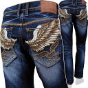 ■【本日の1000円引き】CLOUD72 (クラウド72) #684 メンズ オールシーズン ストレッチストレートデニム/ジーンズ 羽/羽根/ウイング/刺繍/ストレッチ ブルー/インディゴ 28インチ-36インチ
