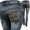 ■grasshopper/グラスホッパー #639 レディース オールシーズン 美脚ストレッチスキニーデニム/ジーンズ 銀糸/刺繍/羽根/十字架/クロス/ロゴ/インディゴ/ブルー 25-30インチ